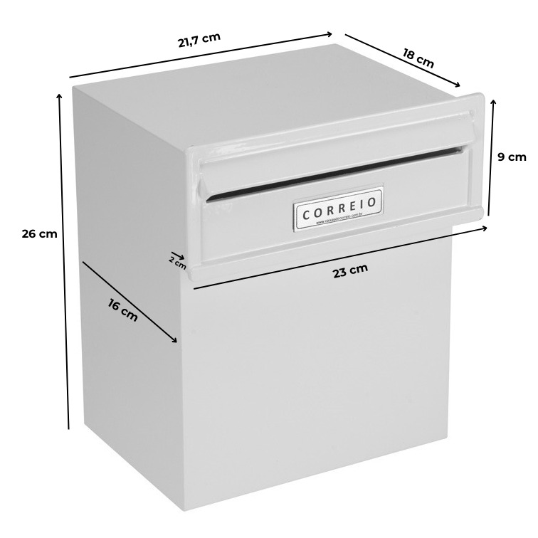Uma Caixa de Correio é um item necessário, útil e bonito para compor a fachada de sua casa, com este nosso modelo que tem um desing especial ficará elegante e durável por ser fabricado 100% em aluminio e pintura eletrostática.